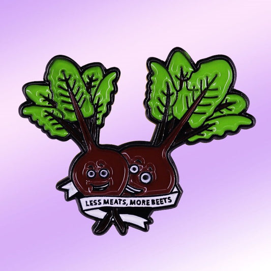 "Less Meats, More Beets" Vegan Enamel Pin